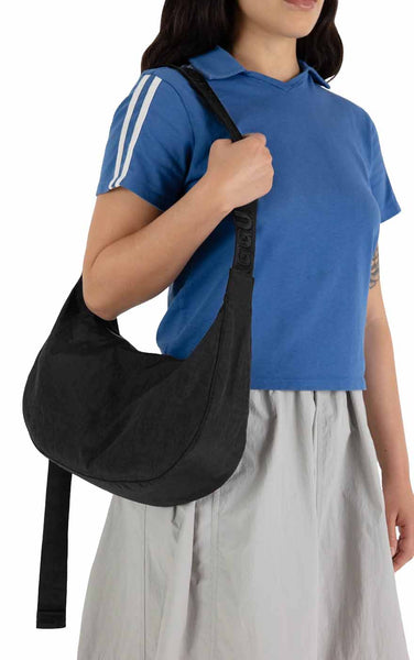 Medium Nylon Crescent Bag in Black