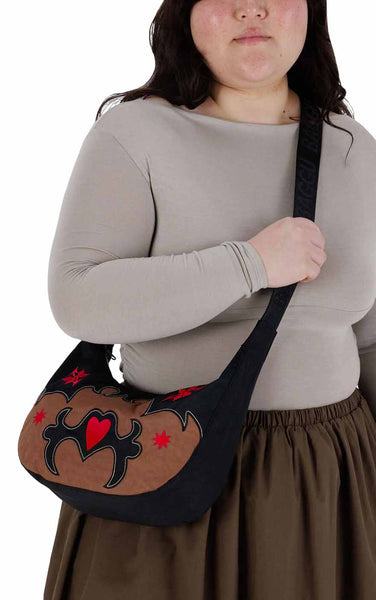 Medium Nylon Crescent Bag in Western Appliqué